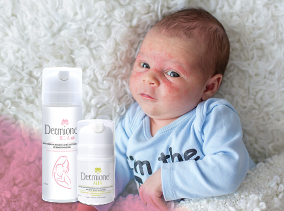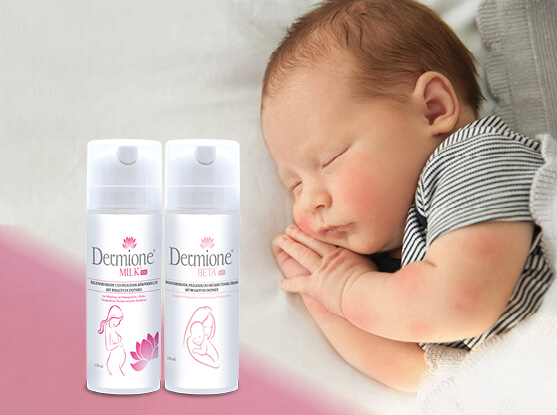 | Die Dermione Beta-Creme basiert auf einer Salbenbasis und pflegt die Haut intensiv. Die Salbe lindert Juckreiz, Rötungen und die Bildung von ekzematösem Schorf auf der von Ekzemen betroffenen Haut. Dermione Beta Creme ersetzt eine Kortikoidbehandlung und wird von Dermatologen vor allem zur Behandlung von Ekzemen empfohlen. Bei schwerer Schädigung oder Rissbildung der Haut aufgrund einer länger bestehenden ekzematösen Erkrankung empfehlen wir die Kombination mit Dermione Strong, die die Wunde schneller schließt, und die rissigen Stellen heilt. |