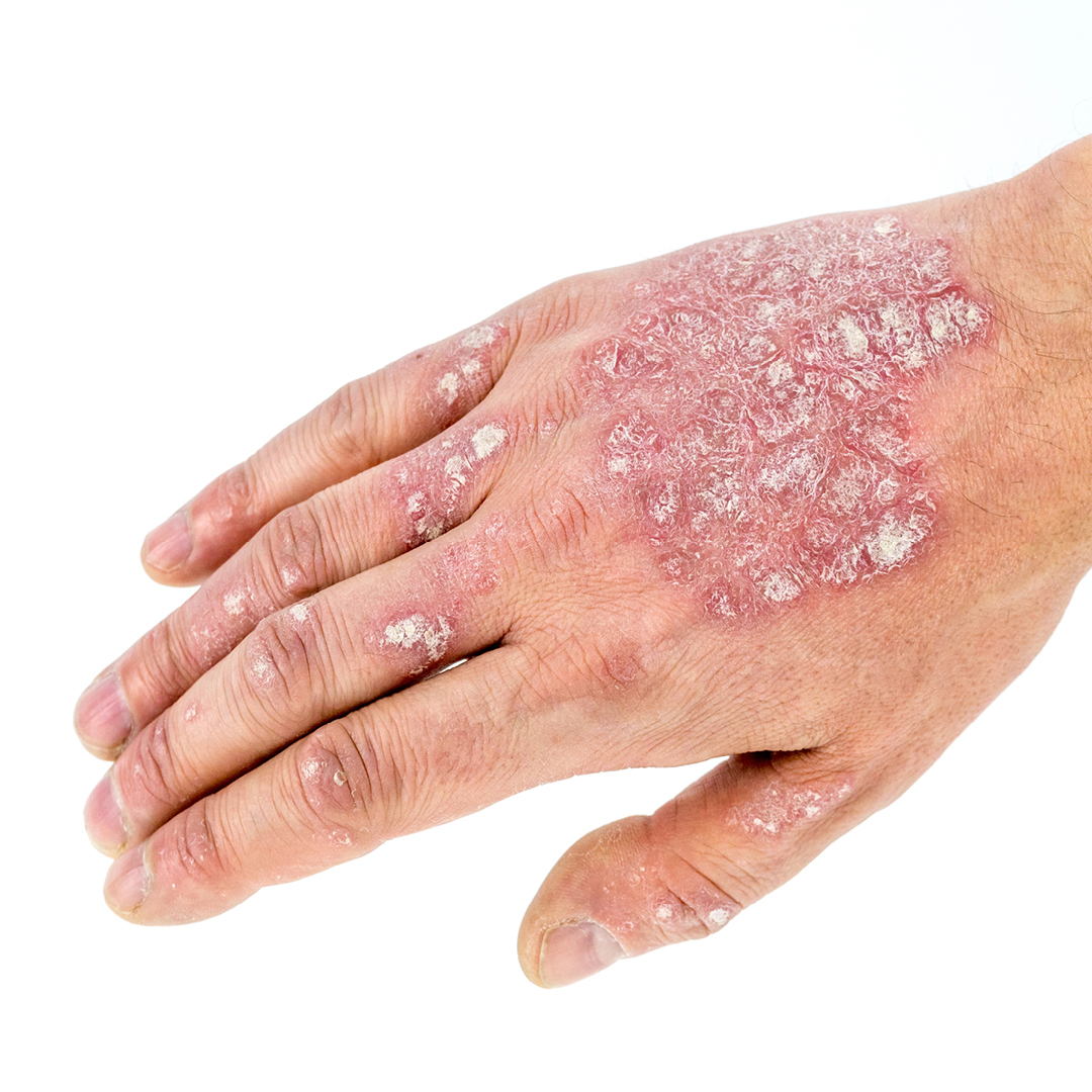 Enzymatische Pflege für hautbelastete Manifestationen der Psoriasis, die den Schwerpunkt auf Schonung, Regeneration und Hydratation legt.