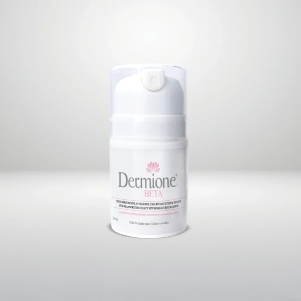 Dermione BETA ist eine nährende Creme mit bioaktiven Enzymen, Sheabutter, Ringelblume und feuchtigkeitsspendenden Inhaltsstoffen, die zur Pflege trockener, empfindlicher oder verhornter Haut beiträgt.