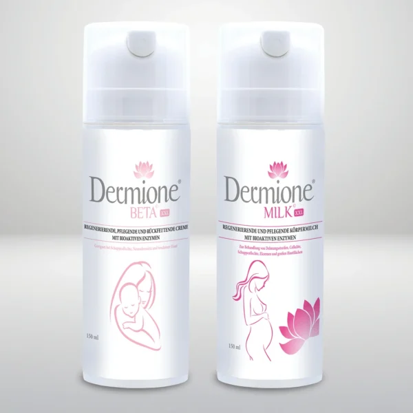 Die Anwendung ist einfach: Tragen Sie die BETA-Creme mehrmals täglich lokal auf die betroffenen Stellen auf, verwenden Sie Dermione MILK zum Schutz und zur Vorbeugung von Austrocknung auf dem ganzen Körper oder größeren Hautpartien, beispielsweise auch vor dem Schwimmen im Pool.