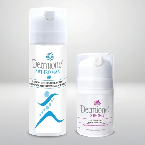 - Dermione STRONG ist eine Creme, die die Hautregeneration und Feuchtigkeitsversorgung bei trockener, gereizter oder geschwächter Haut fördert. Sie enthält bioaktive Enzyme, die die Hauterneuerung unterstützen.