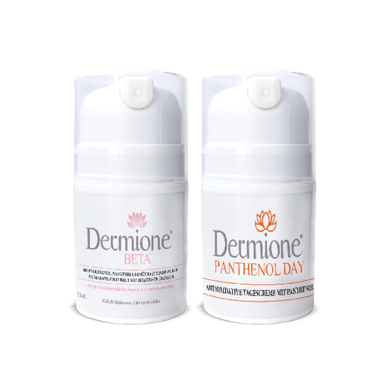 Die Kombination aus der Tagescreme PANTHENOL DAY und der regenerierenden Creme Dermione BETA bietet effektive Pflege für trockene, empfindliche oder zu Neurodermitis neigende Haut.